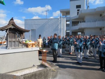 HOME> これまでのNews> 事納奉告祭が執り行われました。 News 2025年12月27日 事納奉告祭が執り行われました。 令和7年の仕事納めとなる本日、本社屋上外宮前に当社役職員一同が参集し、今年1年間の御礼と来年1年間の作業安全・社業繁栄をご祈願申し上げる事納奉告祭を執り行いました。 皆さまには今年も大変お世話になり、誠にありがとうございました。心より御礼申し上げます。 来年も変わらぬご愛顧を賜りますよう、何卒よろしくお願い申し上げます。 <次のNewsへ 前のNewsへ>