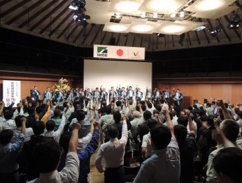 会の締めとして、飯味取締役土木部長の就任挨拶に続き、新入社員の発声により、参加者全員で安全決意を三唱しました。